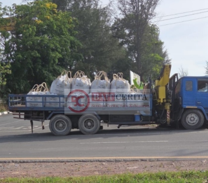 Berdasarkan pantauan di lapangan, sebuah truk crane jenis Nissan Diesel yang diperkirakan produksi sekitar tahun 1991 tipe CD 450VC/tronton terlihat mengangkut sejumlah karung berisi material yang diduga pasir sandblast. Kendaraan tersebut membawa muatan dalam jumlah besar menuju kawasan galangan kapal, Jumat (10/4/2026).