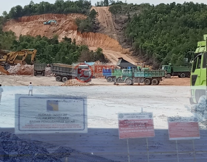 Pagar pembatas yang seharusnya menjadi simbol pengamanan tampak rusak. Segel pengawasan seolah tidak berfungsi. Di baliknya, alat berat seperti excavator dan dump truck terlihat bebas beroperasi.